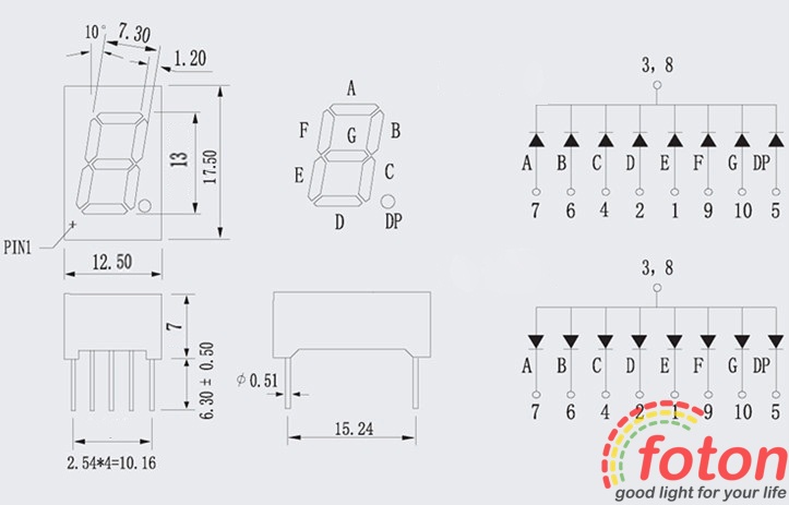 У даній моделі використовується загальний анод, при підключенні необхідно дотримуватися полярності. Висота світлодіодного індикатора становить 0.5 дюйми, що дозволяє створювати цифрові табло з висотою напису 13 мм. Висока яскравість світлодіода забезпечує хорошу читаність значень з великої відстані.