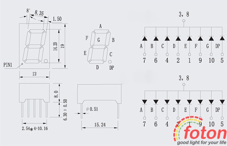 У даній моделі використовується загальний анод, при підключенні необхідно дотримуватися полярності. Висота світлодіодного індикатора становить 0.56 дюйми, що дозволяє створювати цифрові табло з висотою напису 14,2 мм. Висока яскравість світлодіода забезпечує хорошу читаність значень з великої відстані.