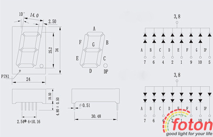 У даній моделі використовується загальний анод, при підключенні необхідно дотримуватися полярності. Висота світлодіодного індикатора становить 1 дюйм, що дозволяє створювати цифрові табло з висотою напису 25,2 мм. Висока яскравість світлодіода забезпечує хорошу читаність значень з великої відстані.