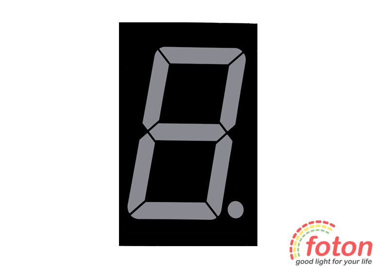 Семісегментний світлодіодний індикатор з точкою, призначений для створення невеликих цифрових табло, може використовуватися в приладах та устаткуванні. Дозволяє відображати одну цифру та точку, світло світлодіода червоне, підкладка чорна.