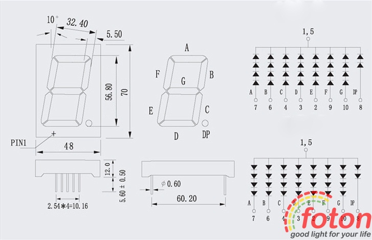 У даній моделі використовується загальний анод, при підключенні необхідно дотримуватися полярності. Висота світлодіодного індикатора становить 2.3 дюйми, що дозволяє створювати цифрові табло з висотою напису 56,8 мм. Висока яскравість світлодіода забезпечує хорошу читаність значень з великої відстані.