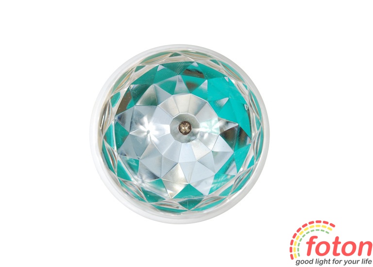 Встановлюється лампа стандартний цоколь E27 (звичайна лампочка), тобто її можна використовувати скрізь: в торшерах, люстрах, світильниках. Усередині лампочки розміщені світлодіоди різних кольорів, накриті фігурною колбою. Світіння м'яке і розсіяне, а повільне обертання лампи навколо осі надає неповторний ефект. Вкрутіть лампочку у вашу люстру і ваша кімната осяє мерехтливими різнокольоровими пелюстками приємного кольору.