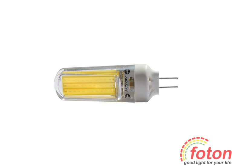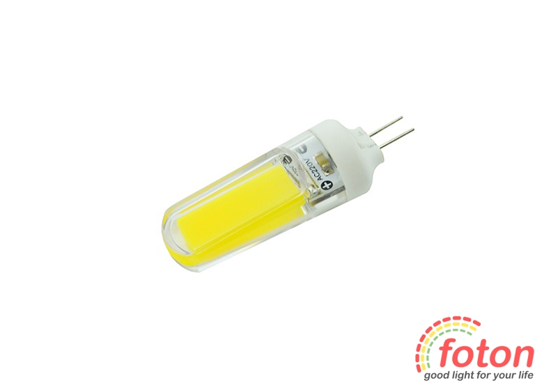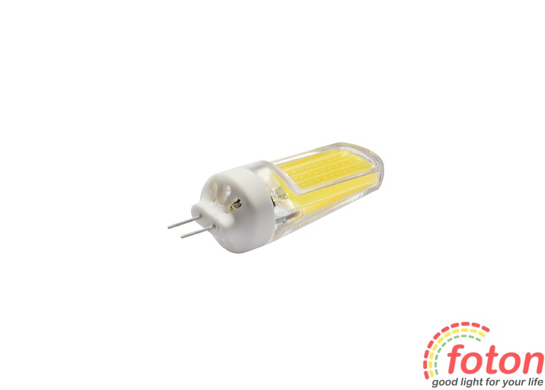 Світлодіодна лампа, G4, 220V 1pcs COB споживає всього лише 9Вт, працює від мережі 220 В, і видає 820 Лм світлового потоку, яке дорівнює 60 Вт галогенній лампочці. Дана LED лампа має рівномірне свічення.