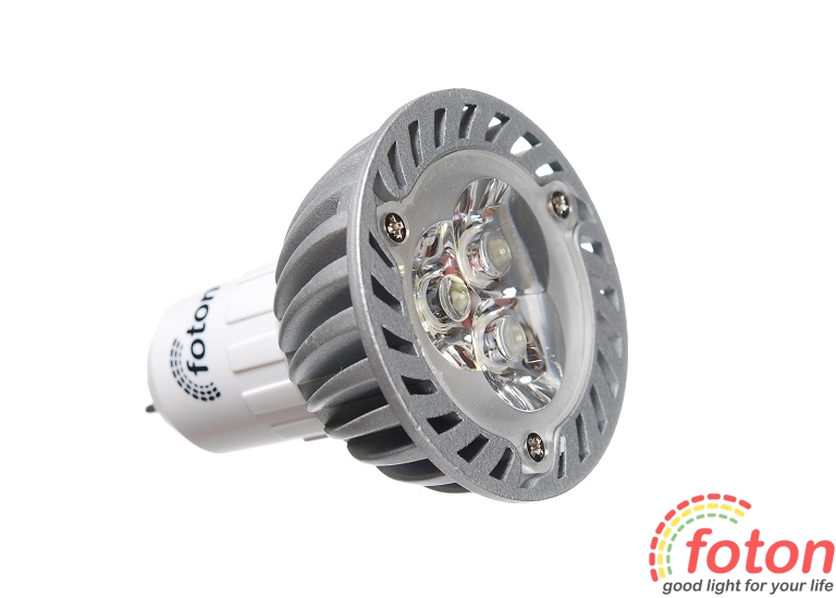 Світлодіодна лампа з цоколем mr16, робоча напруга 220В, 3 світлодіоди по 1 Вт, спрямоване свічення. Аналог галогенної лампи на 35Вт. Ця модель призначена для заміни галогенних ламп у точкових світильниках.