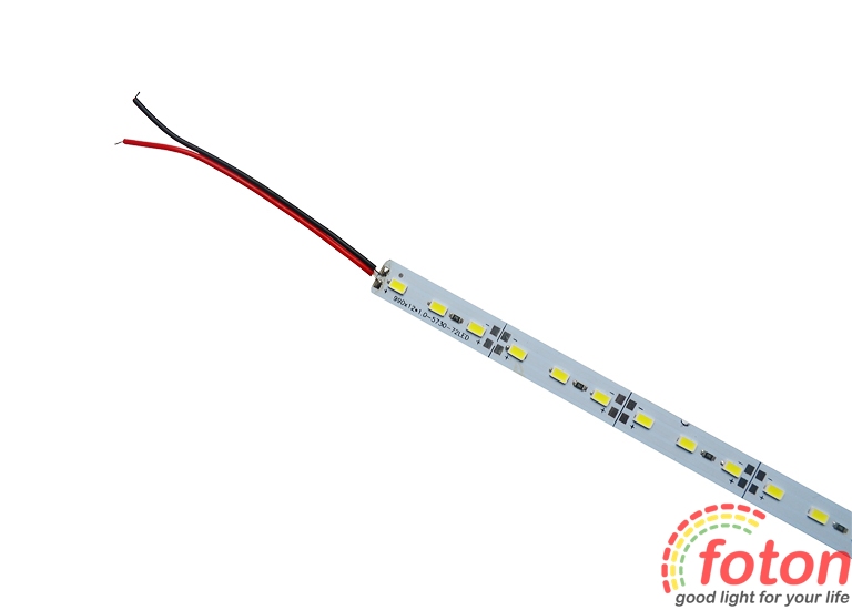 Світлодіодна лінійка на жорсткій алюмінієвій основі. На лінійці встановлено 72 світлодіоди типу SMD5730. Робоча напруга 12В.Багато світлодіодів, встановлених на малій відстані один від одного, забезпечують рівномірне освітлення без засвітів і тіней. Термін служби лінійки – понад 30 000 годин. Споживана потужність становить лише 18Вт, що дозволяє заощаджувати кошти на електроенергії.