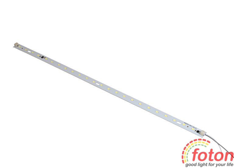 Світлодіодна лінійка на жорсткій алюмінієвій основі. На лінійці встановлено 24 світлодіоди типу SMD5730. Робоча напруга 220В.Багато світлодіодів, встановлених на малій відстані один від одного, забезпечують рівномірне освітлення без засвітів і тіней. Термін служби лінійки – понад 30 000 годин. Споживана потужність становить лише 9Вт, що дозволяє заощаджувати кошти на електроенергії.