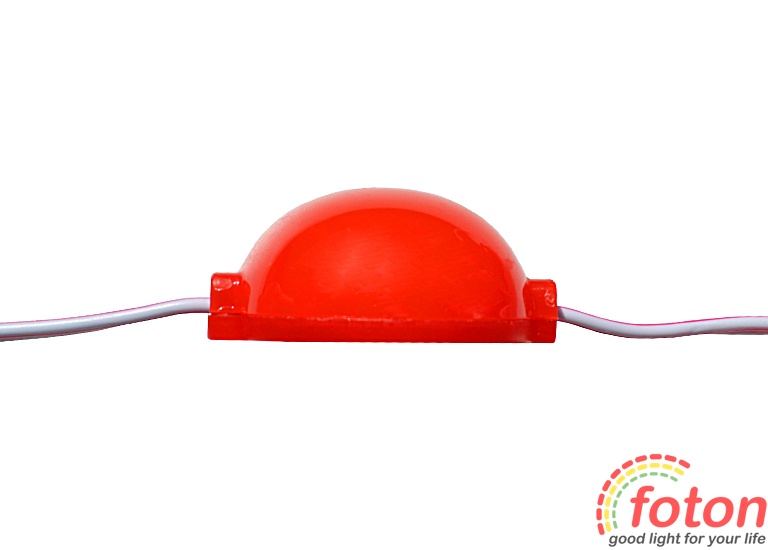Світлодіодний модуль COB 3636, 2W, IP65 виконаний у круглому пластиковому вологозахищеному корпусі. Робоча напруга 12В. Колір свічення червоний. Кластер виконаний на основі світлодіода COB за технологією Chip On Board. Потужність модуля становить 2 Вт.