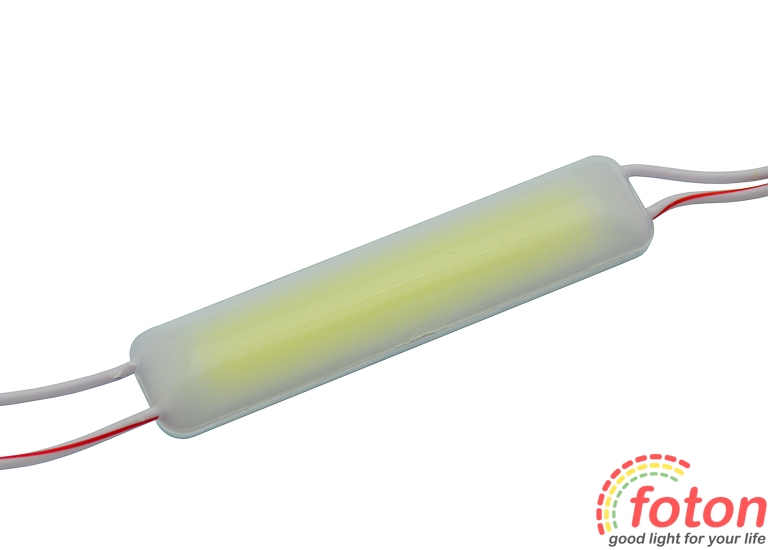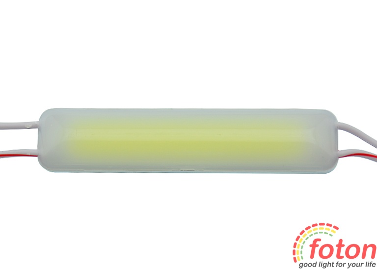 Світлодіодний модуль COB 6014, 8LED, IP67 виконаний у пластиковому вологозахищеному корпусі з матовим розсіювачем. Робоча напруга 12В. Колір світіння білий 6000К. Кластер виконаний на основі світлодіода COB за технологією Chip On Board. Потужність модуля становить 2 Вт.