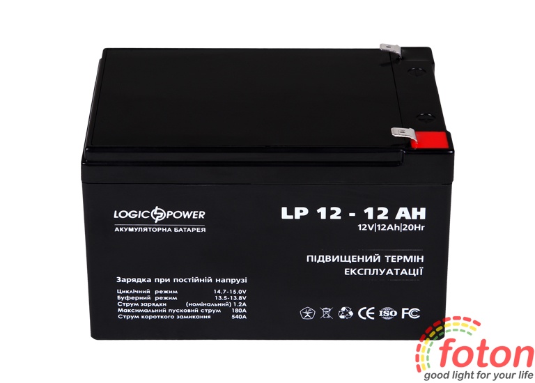 Акумулятор 12В 12Ач відноситься до останнього покоління батарей, має підвищену потужність, збільшений термін служби і не вимагає проведення мінімального технічного обслуговування. Перезаряджається, високоефективний, герметичний і не потребує обслуговування.