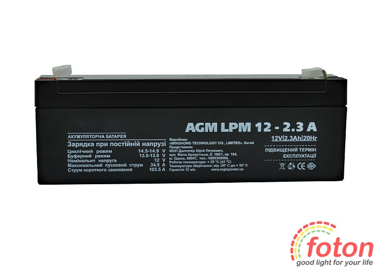Акумулятор 12В 2,3Ач відноситься до останнього покоління батарей, має підвищену потужність, збільшений термін служби і не вимагає проведення мінімального технічного обслуговування. Перезаряджається, високоефективний, герметичний і не потребує обслуговування.