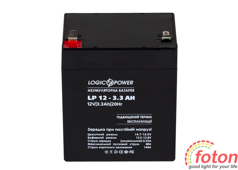 Акумулятор 12В 3,3Ач відноситься до останнього покоління батарей, має підвищену потужність, збільшений термін служби і не вимагає проведення мінімального технічного обслуговування. Перезаряджається, високоефективний, герметичний і не потребує обслуговування.