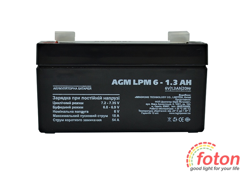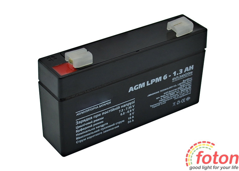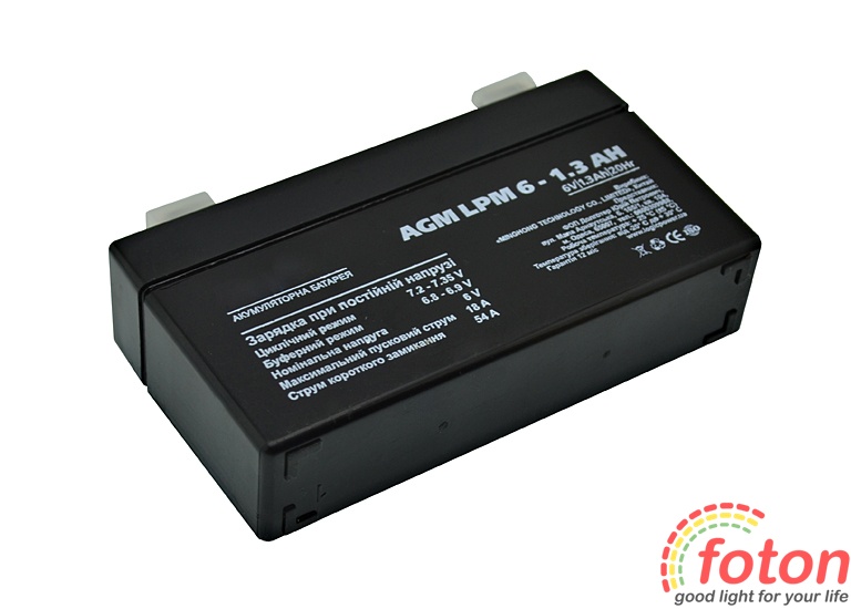 Акумулятор 6В 1,3Ач відноситься до останнього покоління батарей, має підвищену потужність, збільшений термін служби і не вимагає проведення мінімального технічного обслуговування. Перезаряджається, високоефективний, герметичний і не потребує обслуговування.