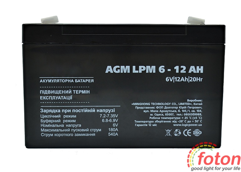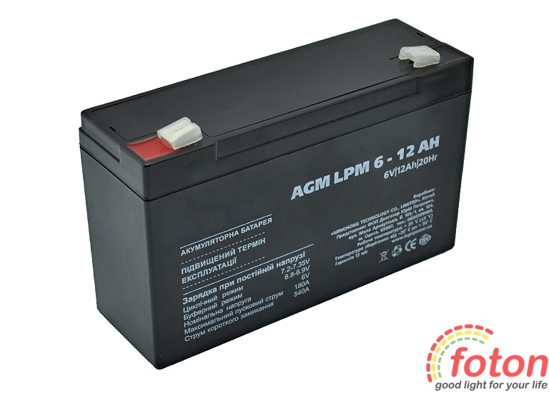 Акумулятор 6В 12Ач відноситься до останнього покоління батарей, має підвищену потужність, збільшений термін служби і не вимагає проведення мінімального технічного обслуговування. Перезаряджається, високоефективний, герметичний і не потребує обслуговування.