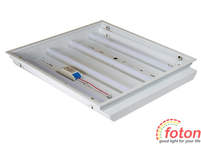Вбудований світлодіодний світильник Армстронг FT-AR-01 призначений для заміни застарілих люмінісцентних світильників Армстронг 600x600мм. Складається зі стандартного корпусу Армстронг з растровим відбивачем та комплектом FT-RS-01.