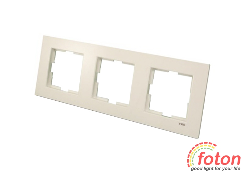 Потрійна горизонтальна рамка Viko Karre серії використовується для декоративного оснащення трьох рядом розміщених вимикачів або розеток. Рамка повністю ідентична кольоровій гамі розеток та вимикачів.