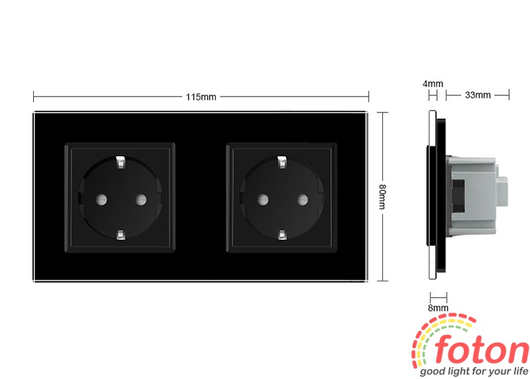 Розетка Livolo Glass представляє лінійку якісних розеток із максимальним захистом. Розетка має два гніздові роз'єми для вилки європейського стандарту. Передня панель виконана з розжареного скла, яке забезпечує гладку поверхню, що не дряпається.
