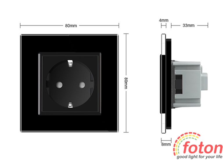 Розетка Livolo Glass представляє лінійку якісних розеток із максимальним захистом. Розетка має один гніздовий роз'єм для вилки європейського стандарту. Передня панель виконана з розжареного скла, яке забезпечує гладку поверхню, що не дряпається.