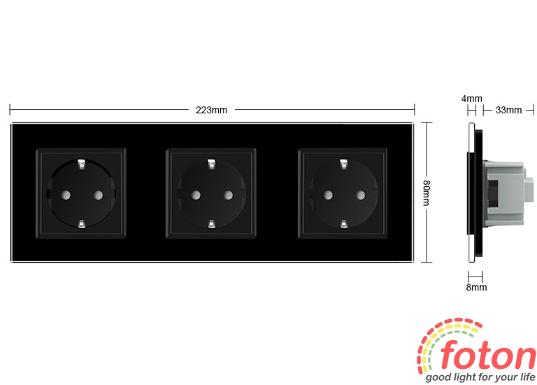 Розетка Livolo Glass представляє лінійку якісних розеток із максимальним захистом. Розетка має три гніздові роз'єми для вилки європейського стандарту. Передня панель виконана з розжареного скла, яке забезпечує гладку поверхню, що не дряпається.