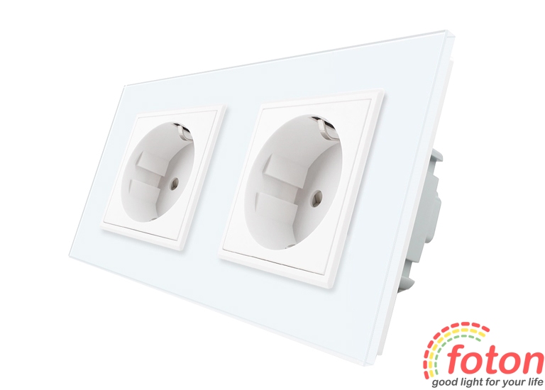 Розетка Livolo Glass представляє лінійку якісних розеток із максимальним захистом. Розетка має два гніздові роз'єми для вилки європейського стандарту. Передня панель виконана з розжареного скла, яке забезпечує гладку поверхню, що не дряпається.