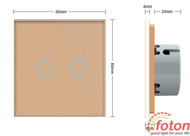 Цей двох сенсорний вимикач розрахований для керування двома лініями навантаження до 1000Вт. В процесі користування сенсорними вимикачами відчувається велика різниця в порівнянні з клавішними вимикачами.