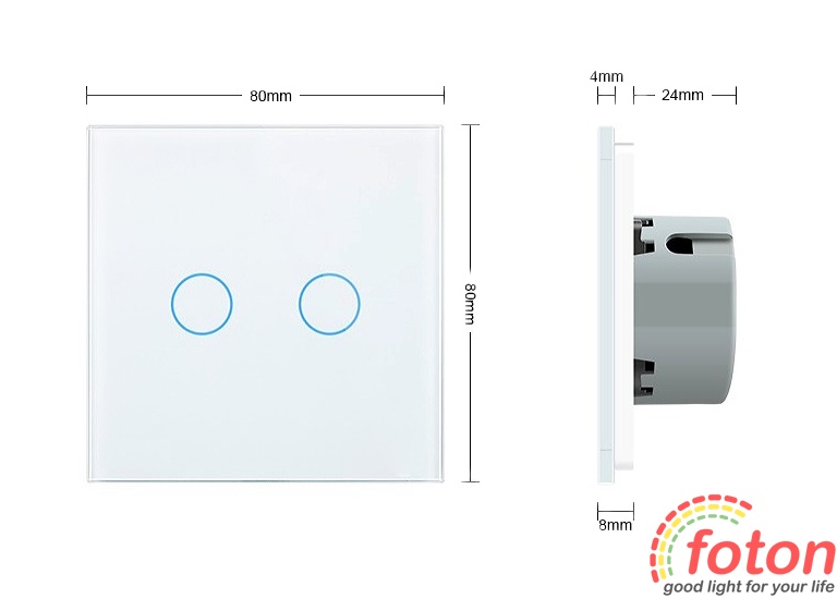 Цей двох сенсорний вимикач розрахований для керування двома лініями навантаження до 1000Вт. В процесі користування сенсорними вимикачами відчувається велика різниця в порівнянні з клавішними вимикачами.