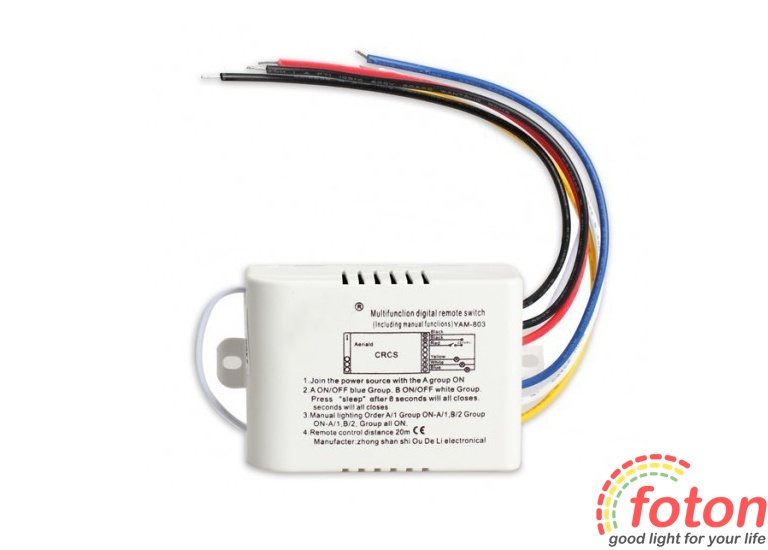 | Комплектація: | - триканальний вимикач - 1 шт - пульт керування - 1 шт - утримувач - 1 шт - батарейка - 1 шт. |