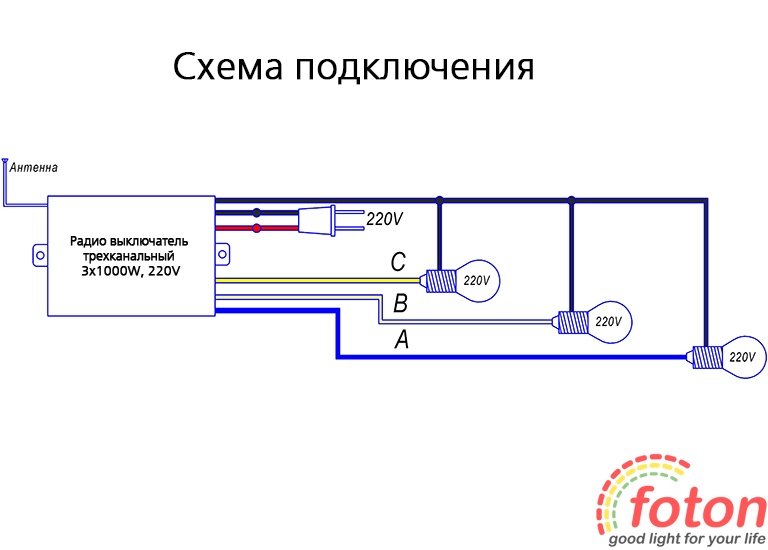 Радіо триканальний вимикач 3x1000W, 220V призначений для комутації струму змінної напруги до 260 В і силою до 10 А. Дальність дії пульта ДК досягає 100 метрів, що дозволяє вільно контролювати освітлення, перебуваючи в будь-якій точці приміщення. За допомогою цього вимикача ви можете керувати трьома окремими каналами освітлення, включати та вимикати їх незалежно один від одного. Також є режим D, який відключає всі освітлення через 30 секунд після натискання клавіші.