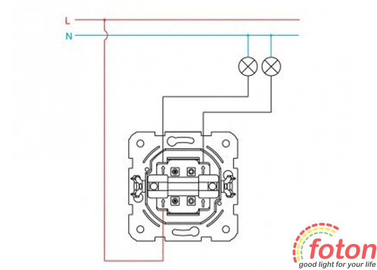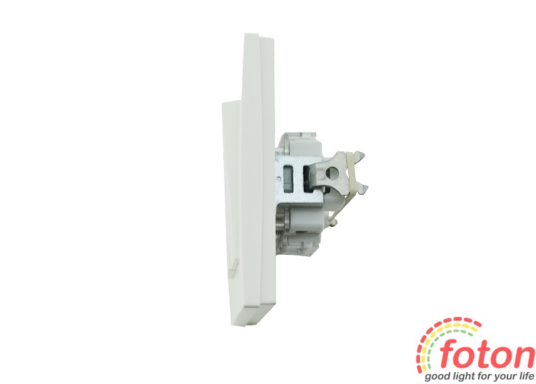 Чіткі геометричні форми вимикача дозволяють його красиво скомпонувати в рамці з іншими вимикачами і отримати таким чином стильне та функціональне рішення. У конструкції вимикача передбачена можливість швидкого монтажу, за якого для підключення до електромережі використовуються затискачі.