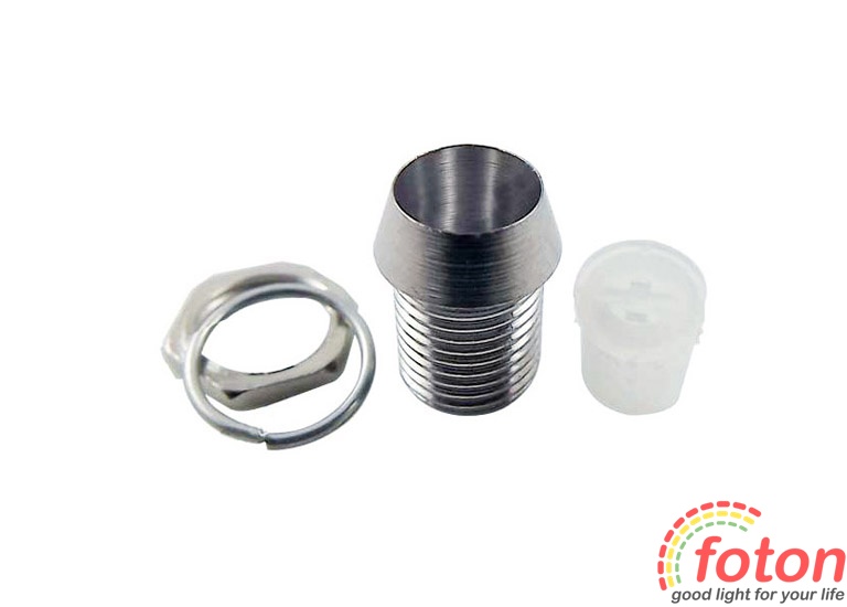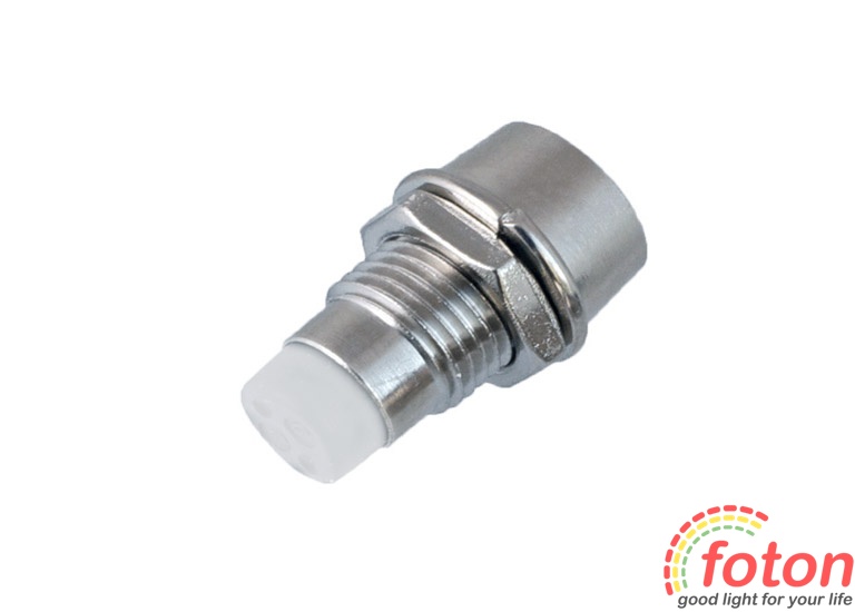 Тримач із пластиковою заглушкою для вивідних світлодіодів діаметром 3мм. Матеріал тримача сталь, хромоване покриття.