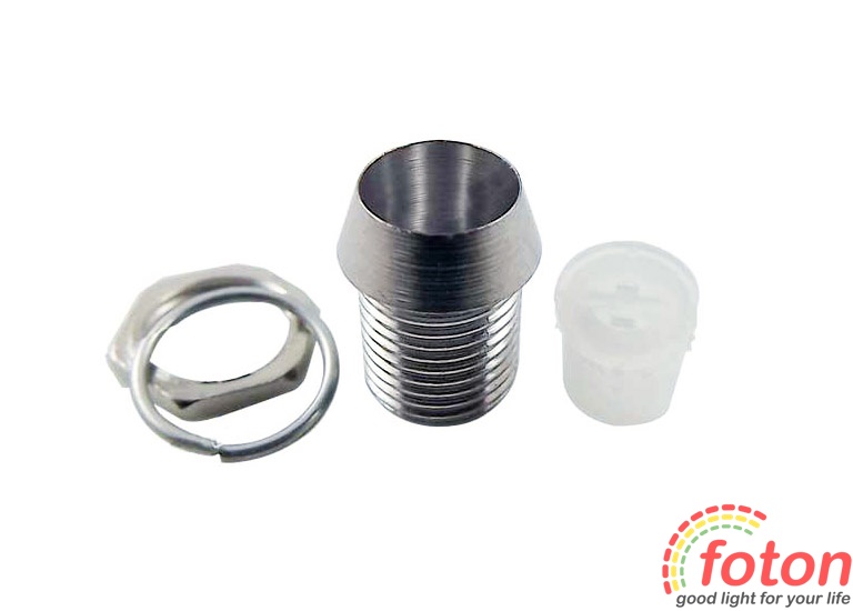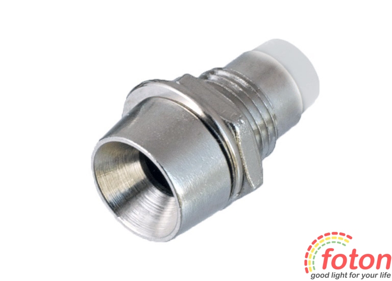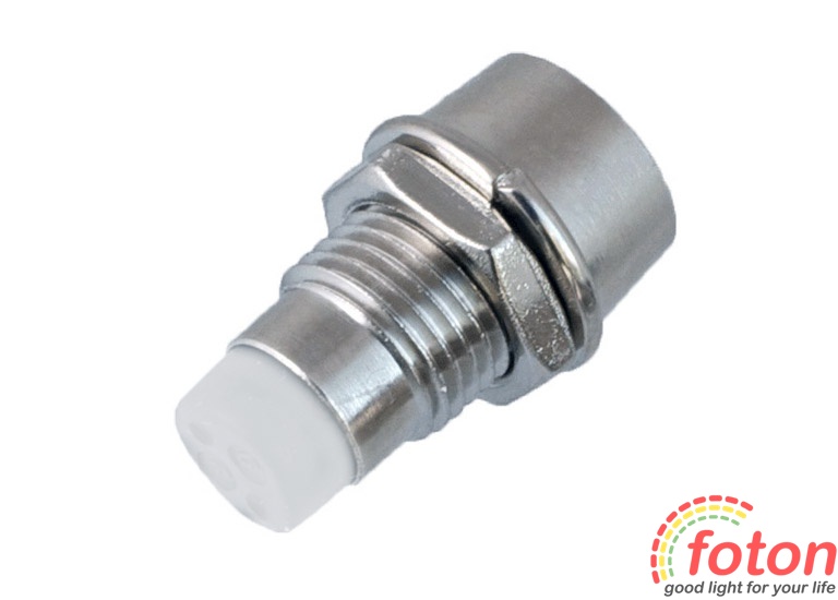 Тримач із пластиковою заглушкою для вивідних світлодіодів діаметром 5мм. Матеріал тримача сталь, хромоване покриття.