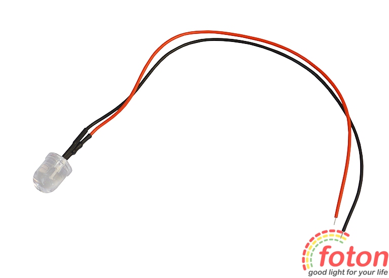 Вивідний світлодіод 10мм (білий) 5-12В із проводом