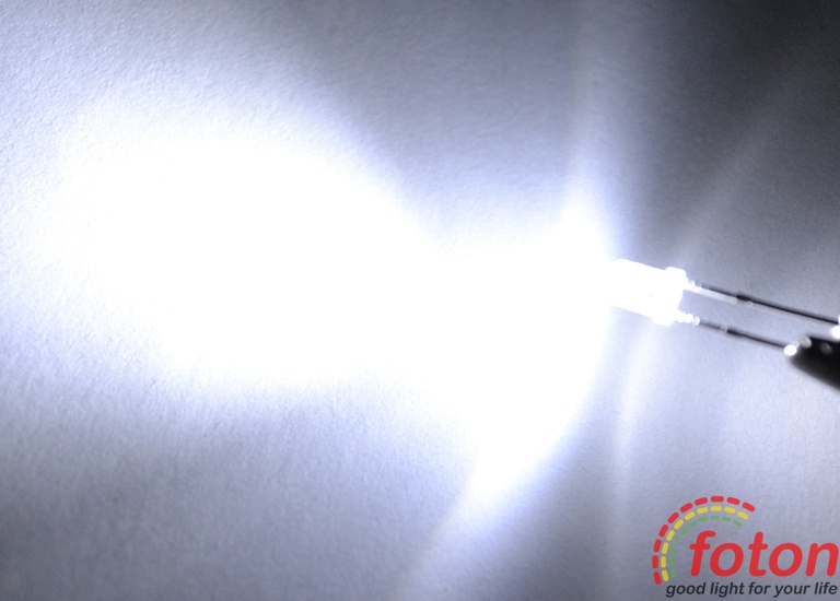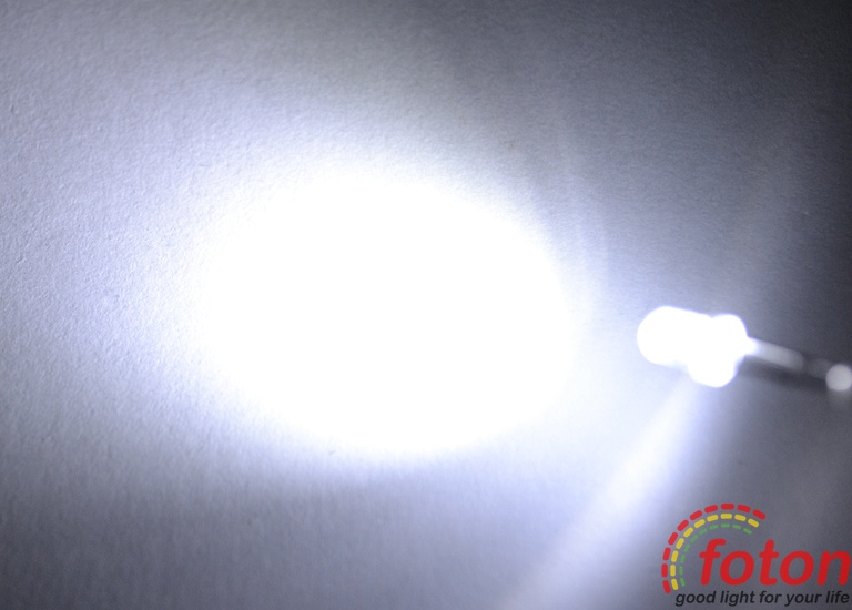 Вивідний світлодіод 3мм. Прозора лінза. Колір білий.