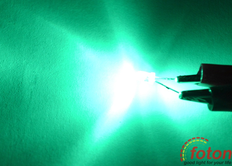 Вивідний світлодіод 3мм. Прозора лінза. Колір зелений.