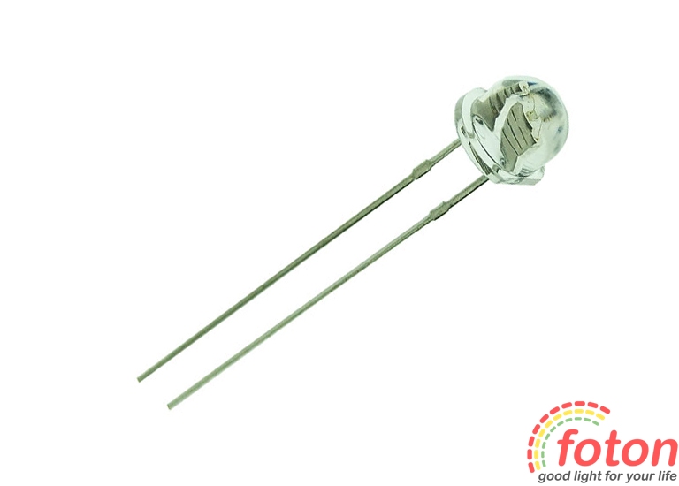 Вивідний світлодіод 4,8мм. Прозора лінза. Колір білий.
