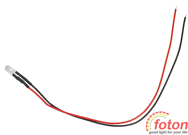 Вивідний світлодіод 5мм (білий) 5-12В із проводом