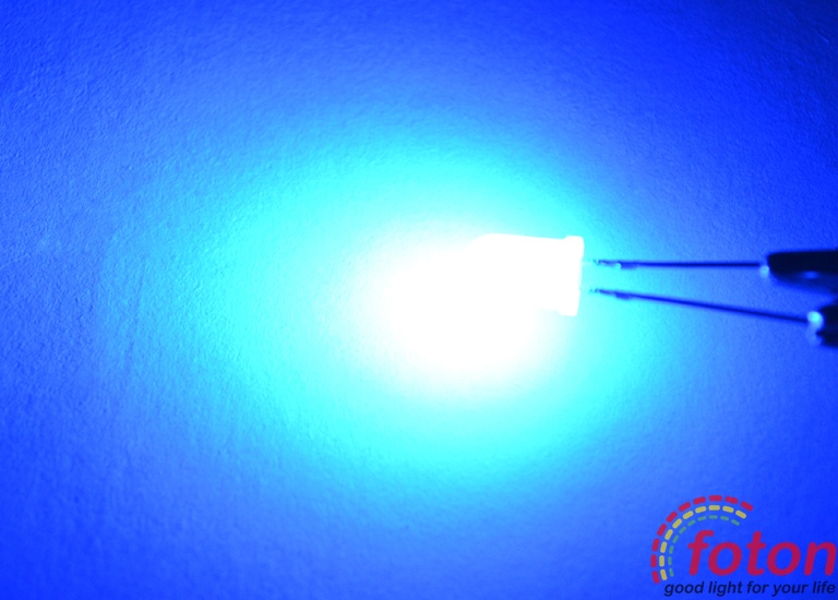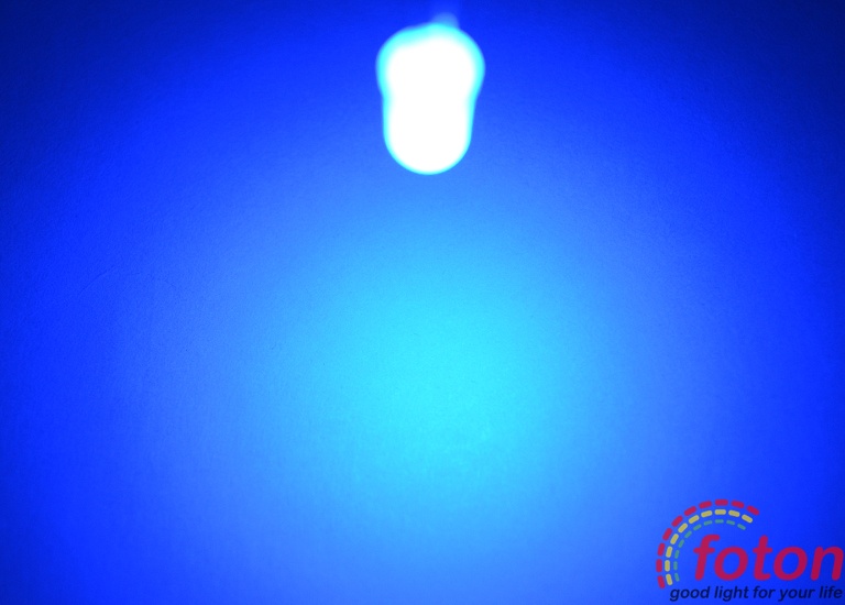 Вивідний світлодіод 5мм. Матова лінза. Кут свічення 60 °. Колір синій.