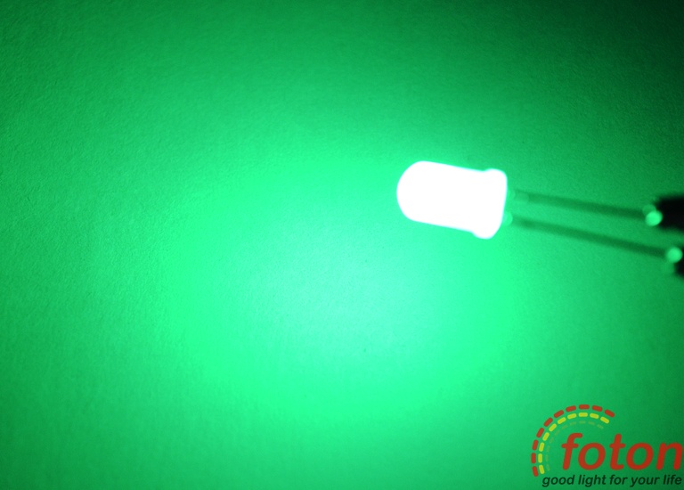 Вивідний світлодіод 5мм матовий (зелений) 3.0-3.2В