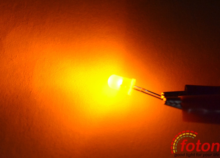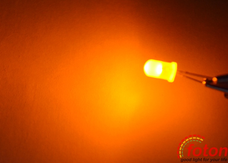 Вивідний світлодіод 5мм. Матова лінза. Кут свічення 60 °. Колір жовтий.