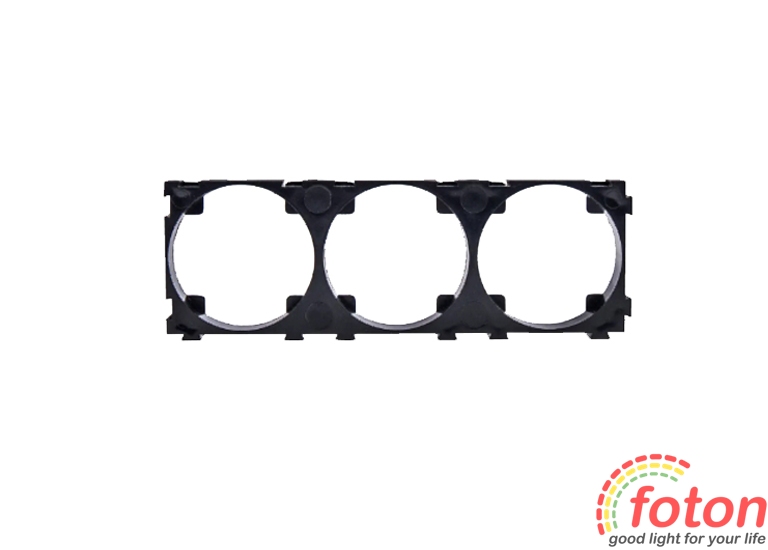 Кожна кліпса для акумуляторів 18650 має бічні кріплення, за допомогою яких кронштейни з'єднуються між собою.Кронштейн для акумуляторів 18650 виконаний із спеціального ABS пластику з додаванням полікарбонату - цей матеріал міцний, термостійкий та стійкий до ударів.Головна їх особливість - універсальність, зручність монтажу, цілісність конструкції, гарна вентиляція та достатнє охолодження.